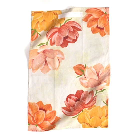 Format | Single tea towel Features | Soft and absorbent 100% cotton fabric, hand-painted illustration, Hang Tightâ„¢ Loop to securely display. Size | 19″ x 28″ Origin | Imported Product Type | Kitchen Tea Towel
