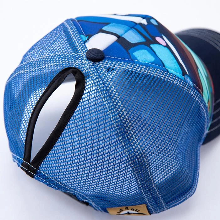 Original Art by outdoor inspired artist Abby Paffrath, this Up Do Trucker is bright like a summer days and the added hole in the back is perfect for keeping your hair off your neck.