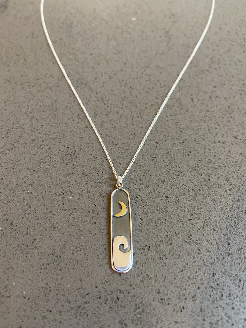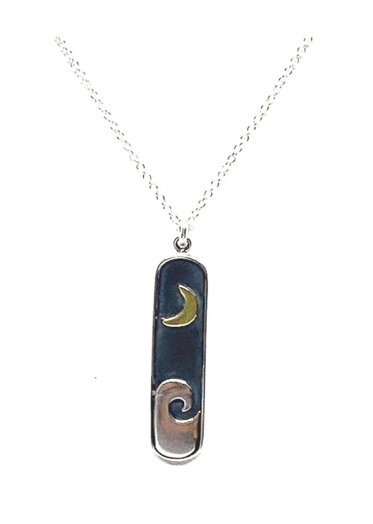 Created in southern California, these sterling silver nature inspired moon phases, sun and trees will keep you connected to the great outdoors. 16-17″ sterling silver chains with 1″ extender.