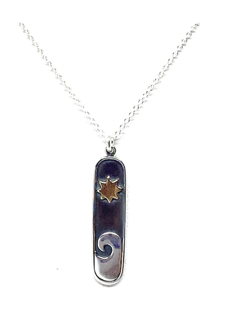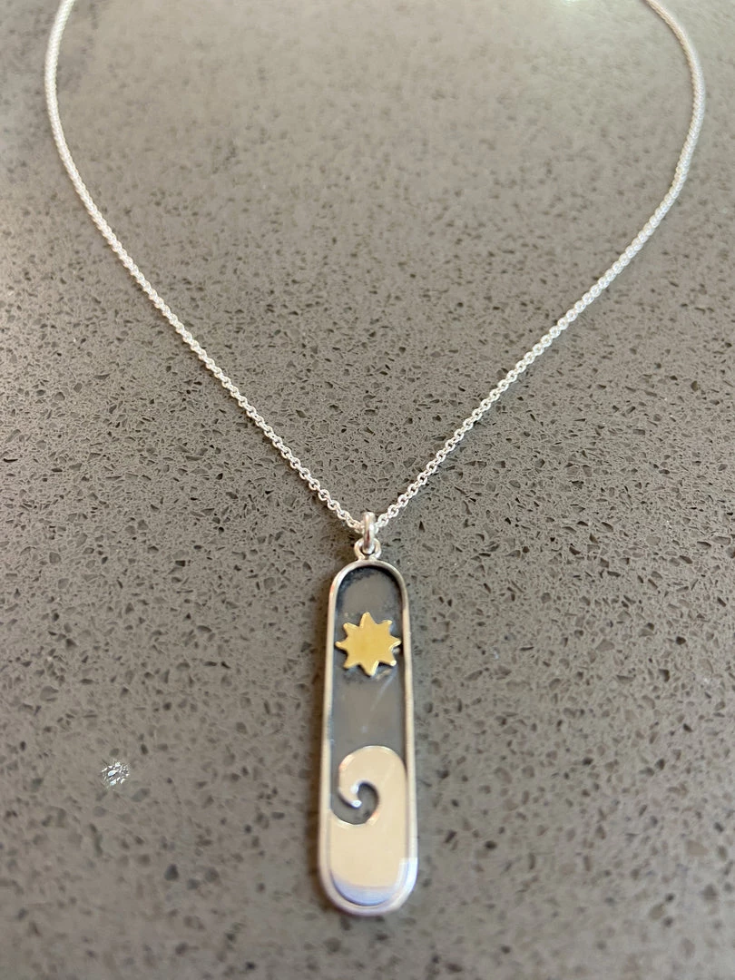 Created in southern California, these sterling silver nature inspired moon phases, sun and trees will keep you connected to the great outdoors. 16-17″ sterling silver chains with 1″ extender.