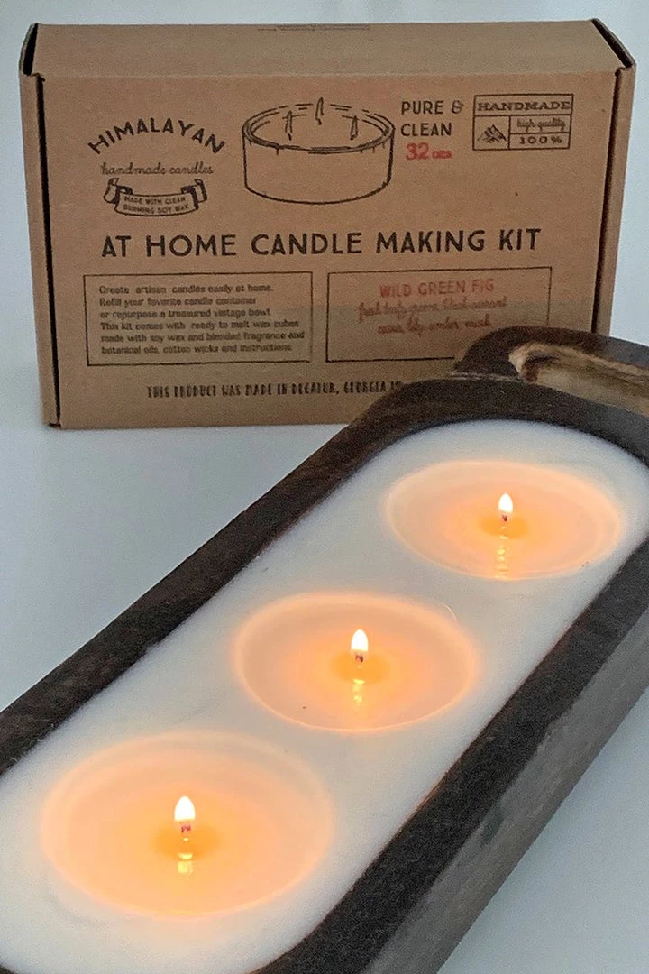 Refill your favorite container or re-purpose a treasured vintage bowl. This kit comes with 32 oz of ready-to-melt soy wax cubes made with blended fragrance, botanical oils, cotton wicks, and easy instructions. For gas or electric stove tops, or the microwave! In Tobacco Bark or Wild Green Fig scents.