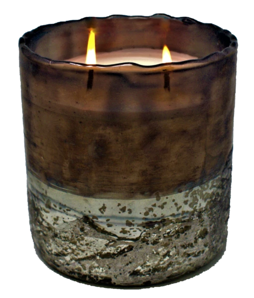 The new Horizon candles are truly one of a kind, artistic pieces that evoke beautiful images of horizon landscapes. They have a textured gold and/or silver finish at the base and a shiny, smooth finish at the top. This candle has two wicks and is four inches by five inches tall. This candle container is made of thick glass, hand blown in four colors with uneven rims – a one of a kind centerpiece suited for every style. Each piece will vary in its finish and texture. The Horizon Collection candles are hand poured in Georgia, by experienced candle makers, with twenty-two ounces of a clean burning, United States grown, fragranced soy wax blend with a high-quality fragrance compound oil. The distinctive fragrances are saturated with layers of nuance, complex and intricate, and are designed to evoke a particular time and place, triggered by memories and nostalgia.  These beautiful vessels are individually created by artists all over the world. Every candle is crafted in small batches, by artisans with meticulous attention to details from mixing of the ingredients, hand pouring the wax, adding the dustcovers, and boxing the candles.Â