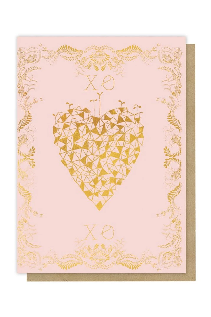 “Sweet heart” 5″ X 7″ PAPAYA fine Greeting Cards are embellished with gold foil details and rich matte paper. Interior is blank inside and gently illustrated with full color designs. Paired with a special “To and From” screen printed labels. Individually sealed & printed on recycled paper.