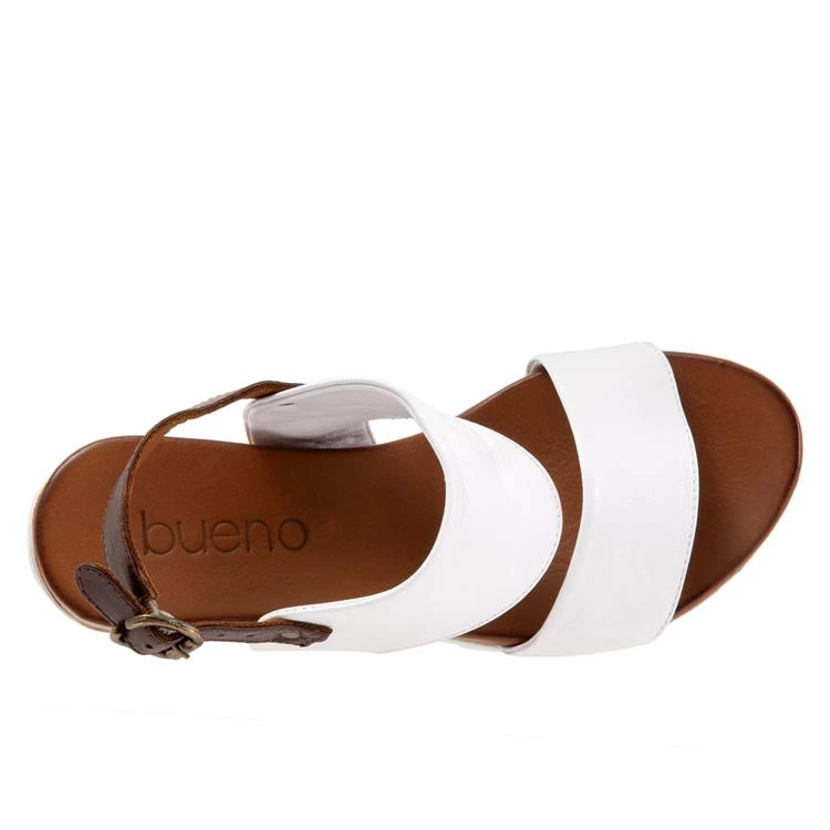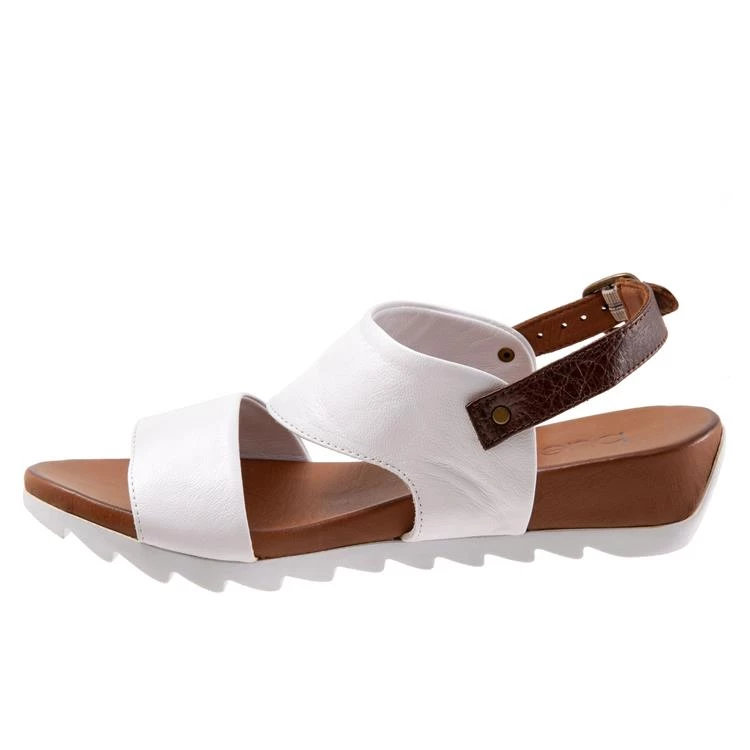 Fara features dual front straps and a contrasting adjustable back strap. The white flexible EVA sole has an aggressive deeply grooved pattern.
