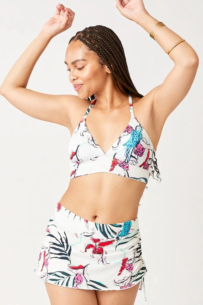 For a little more coverage with a feminine, flirty feel, the Hoku Swim Skirt was constructed with a built in bikini bottom, ruching at waist, and a cinchable side tie for an adjustable hem length. Keeps your rear covered, lets your playful spirit shine.