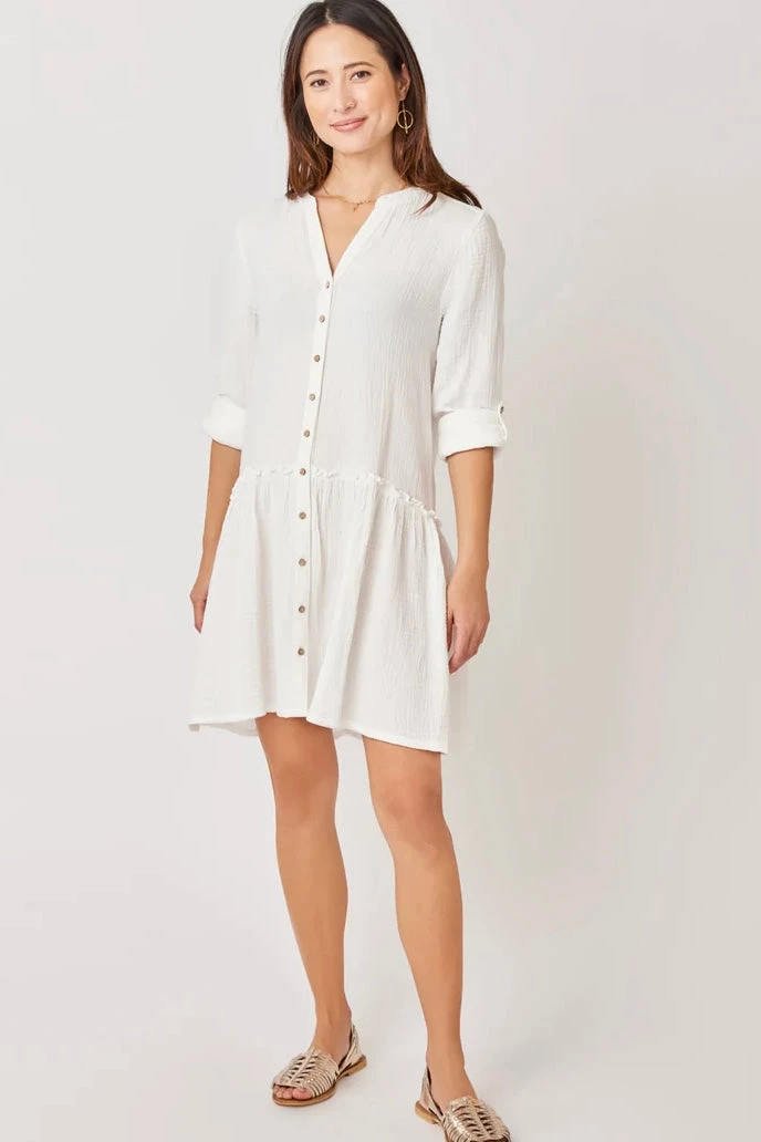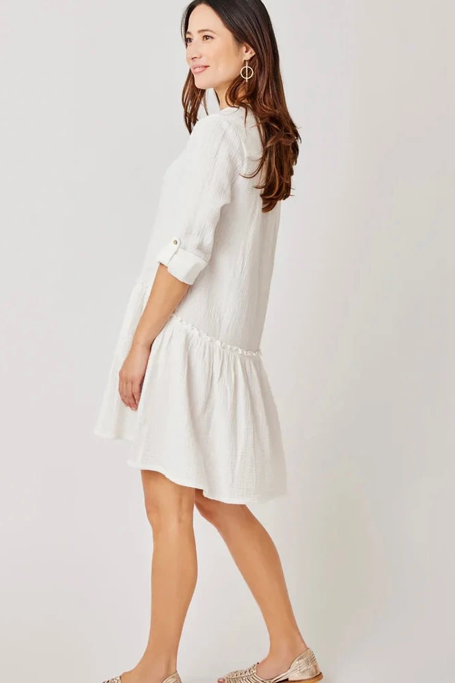 The casual charm of a collarless button down paired with a flouncy tiered skirt and playful ruffle detail. The Blair is pretty, in a totally effortless way. One of our favorites for throwing on after a jump in the lake.