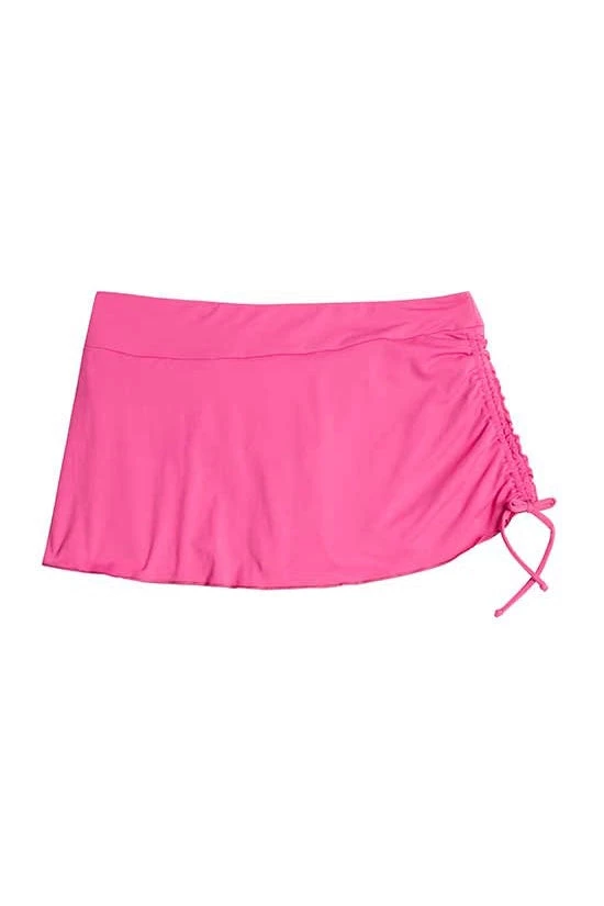 For a little more coverage with a feminine, flirty feel, the Hoku Swim Skirt was constructed with a built in bikini bottom, ruching at waist, and a cinchable side tie for an adjustable hem length. Keeps your rear covered, lets your playful spirit shine.