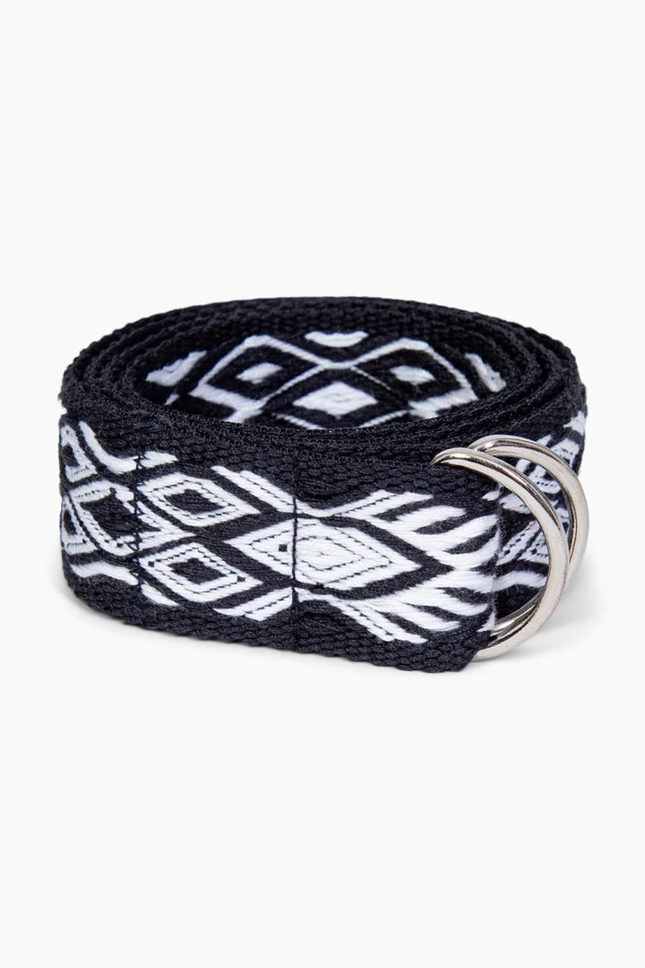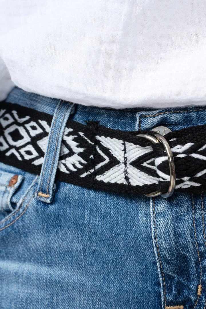 Soft–woven belt in a chic mesa design and a frayed edge and a double D-ring, this is the perfect belt to wear with your favorite pair of jeans.Â
