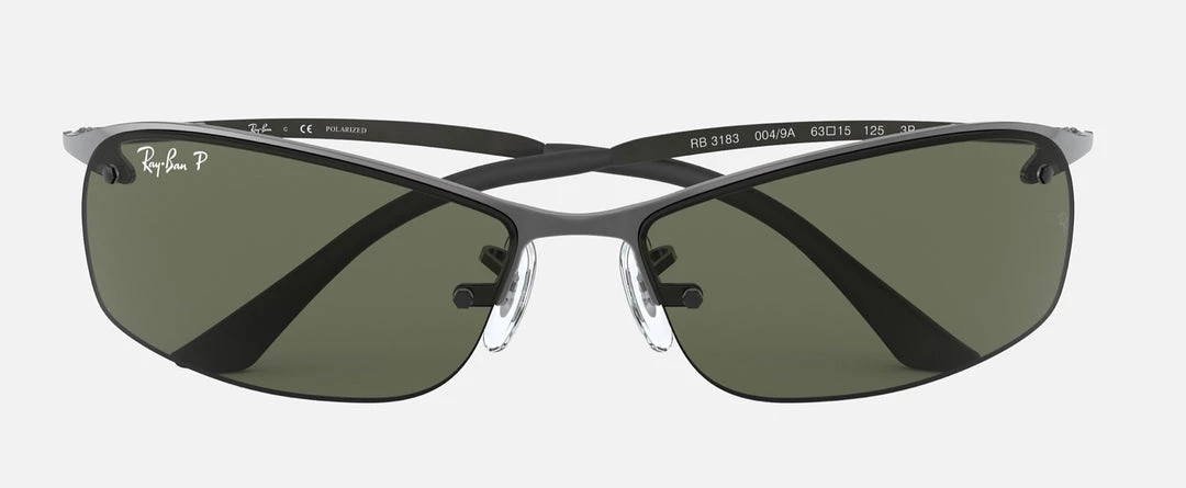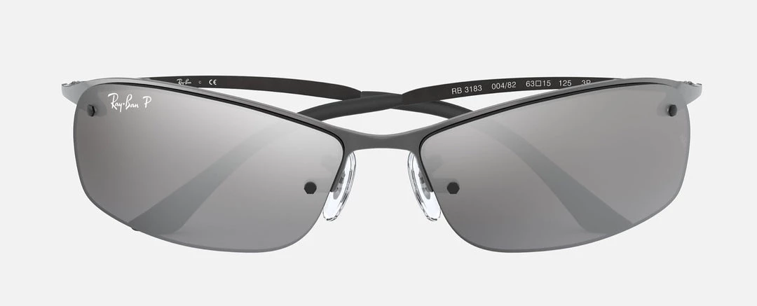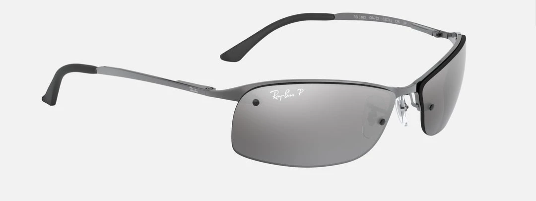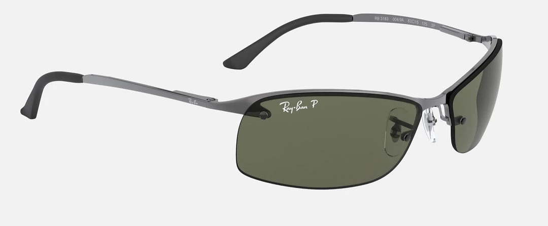 The Ray-Ban ® RB3183 sunglasses are slick and like speed. The sunglasses feature a lightweight semi-rimless rectangular shape and the temples have a classic Ray-Ban printed logo.