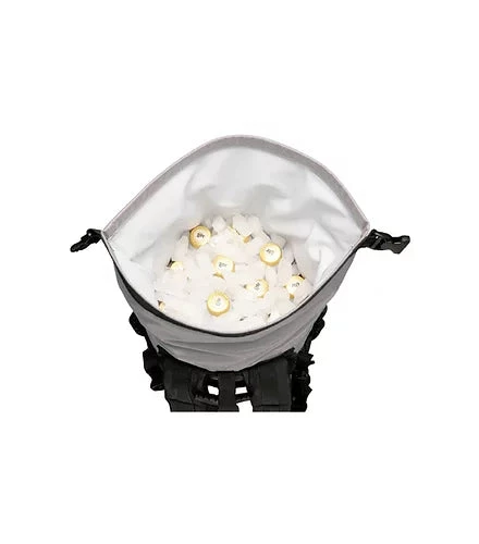 Keep ice for days or your gear dry. This cooler features capacity to store up to 25 lbs of ice, 24 cans or 18 bottles. The waist strap and padded shoulder straps balance heavy loads proportionally. Available in 2 colors