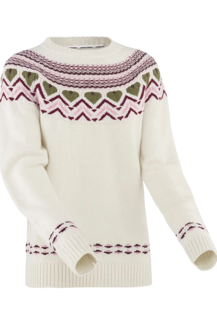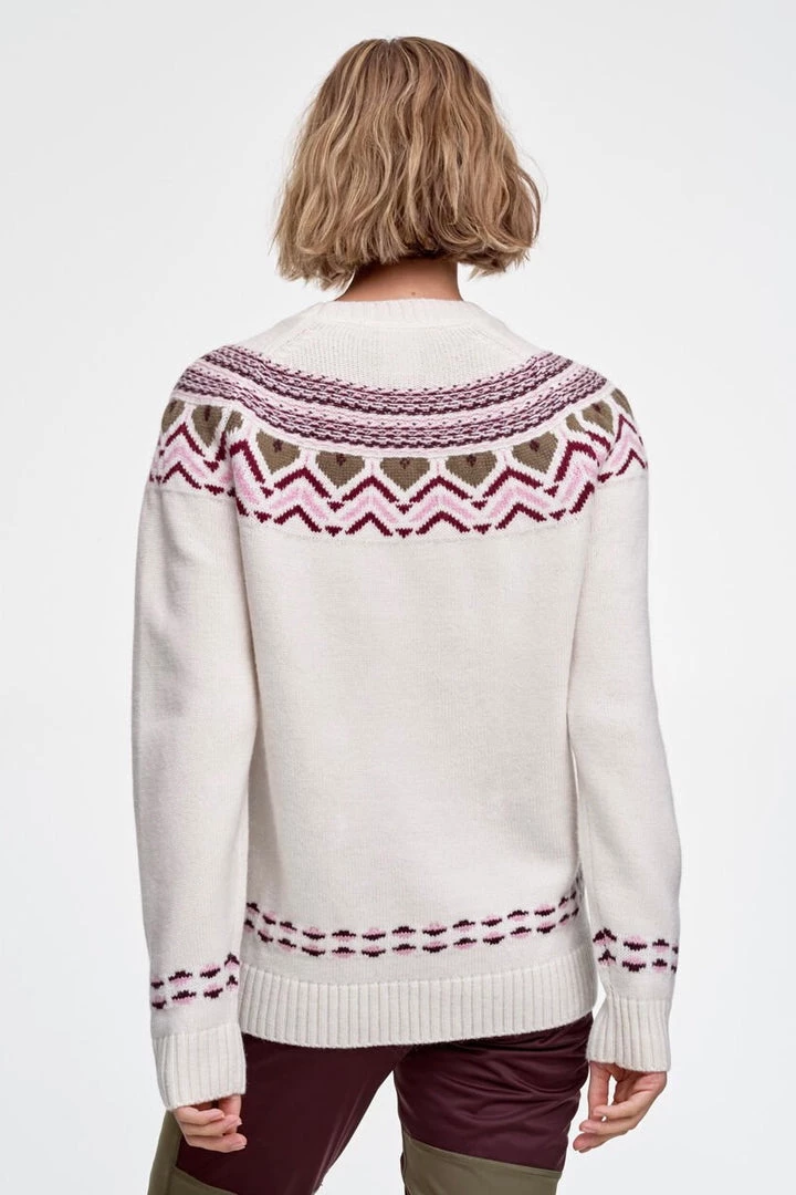 The Kari Traa Sundve Knit is a warm, casual, knitted women’s sweater with a Nordic pattern. It’s a fall and winter favorite. Made from a supple wool and synthetic blend, it keeps you nice and warm and is perfect for layering. The bold, Scandinavian-inspired pattern rolls around the round neck, shoulders and raglan seam, and is echoed on the hem and cuffs.