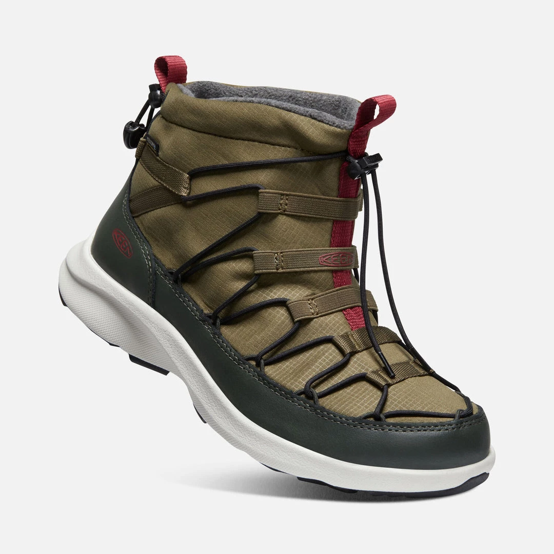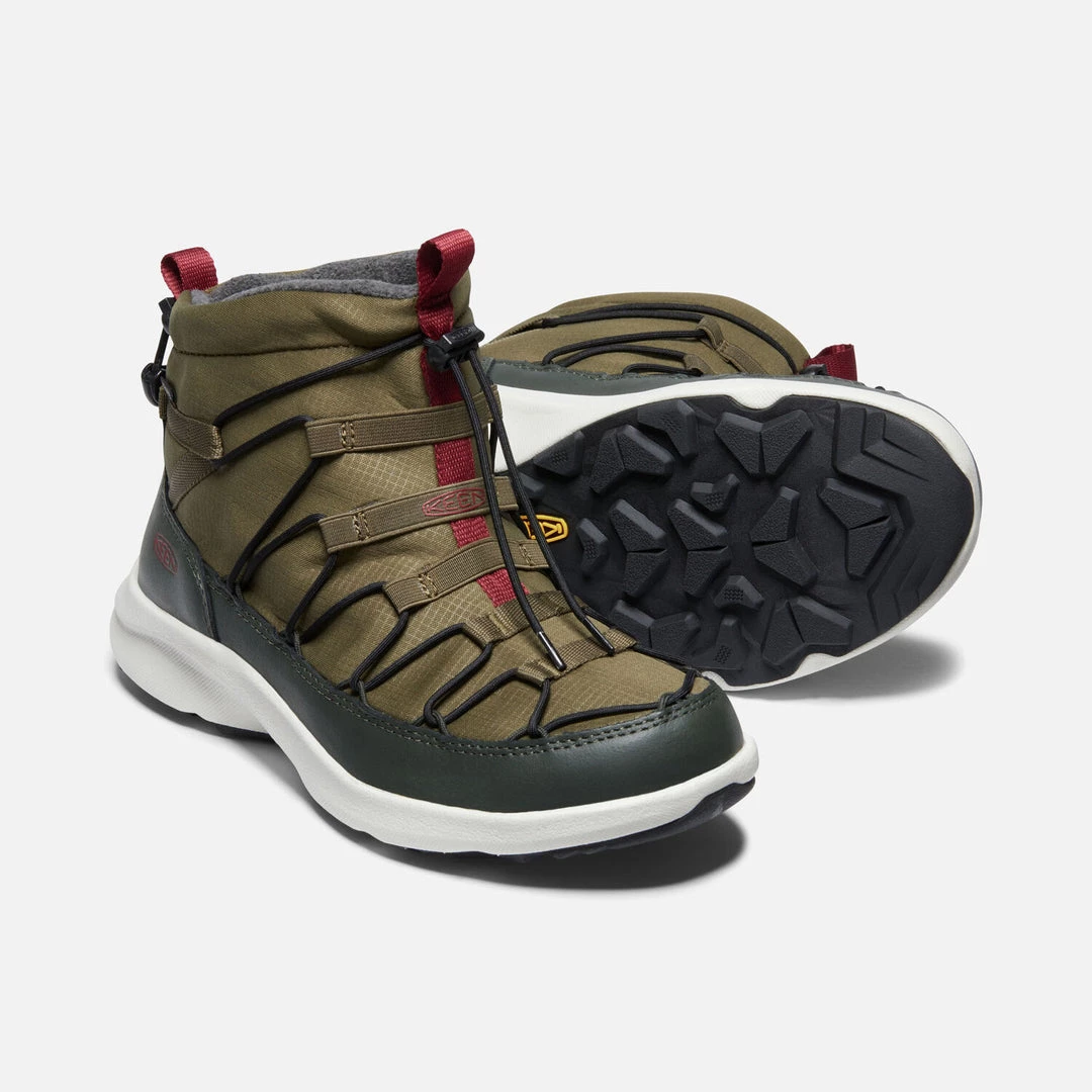 Keen took their ultra-comfy, cord knit adventure sneaker and turned it into a waterproof chukka. With warm fleece inside, KEEN.FREEZE rubber for winter traction, and recycled plastic in the cord and upper. Et Voila…a perfect, warm winter boot for you!