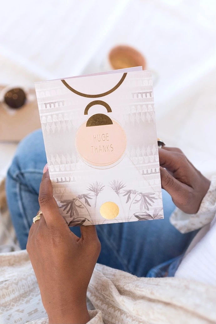 5″ X 7″ PAPAYA fine Greeting Cards are embellished with gold foil details and rich matte paper. Interior is blank inside and gently illustrated with full color designs. Paired with a special “To and From” screen printed labels. Individually sealed & printed on recycled paper.