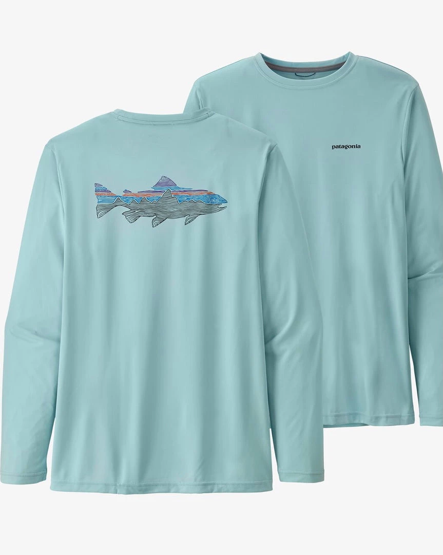 The Long-Sleeved Capilene® Cool Daily Fish Graphic Shirt combines a relaxed fit with a lightweight, quick-drying and fast-wicking 100% recycled polyester fabric with HeiQ® Fresh durable odor control and 50+ UPF sun protection. Original fishing-inspired graphics. Fair Trade Certified™ sewn.