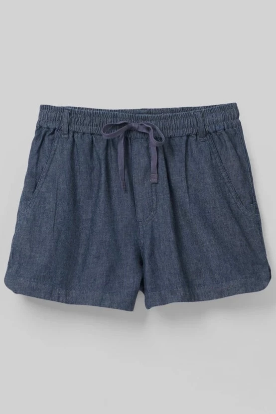 This easygoing chambray short has an elastic waistband for comfort, plenty of pockets and a cute, and a slightly washed out finish that makes this casual style an easy one to pair with your closet faves.Â