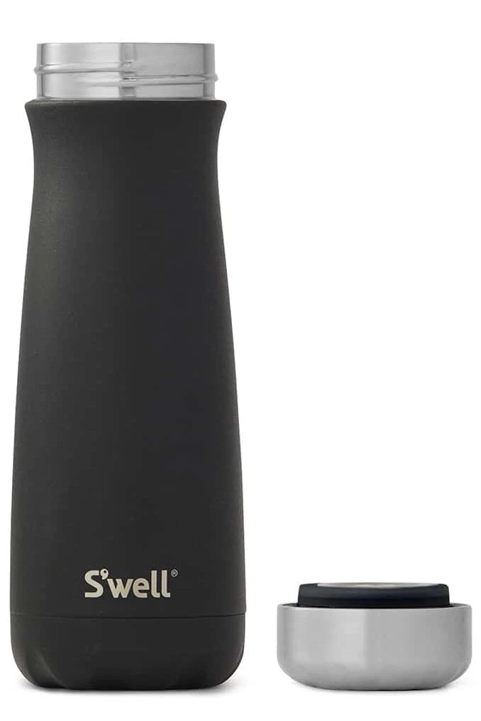 - S’well travelers feature triple-layered, vacuum-insulated construction, designed to keep beverages cold for up to 24 hours or hot for up to 12.