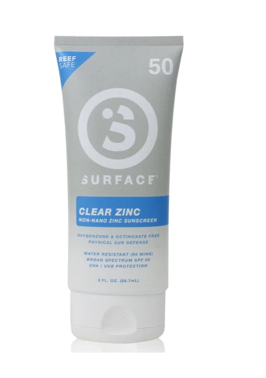 Where ultimate protection and ultimate comfort meet. The Surface Clear Zinc SPF50 Lotion is athlete tested to provide maximum sun protection in the harshest of environments. Made of Non-Nano Zinc Oxide and Titanium Dioxide this Reef Safe, Broad Spectrum UVA/UVB lotion is the perfect choice for those looking for the best in physical sun defense.