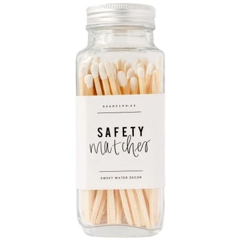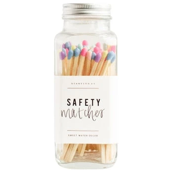 DETAILS: • 3.75” Match Sticks • Approximately 60 Matches Per Jar • Safety Matches • Strike Match on Strike Pad on Jar to Light • Glass Jar Size: 5 ⅜ x 2 x 2”