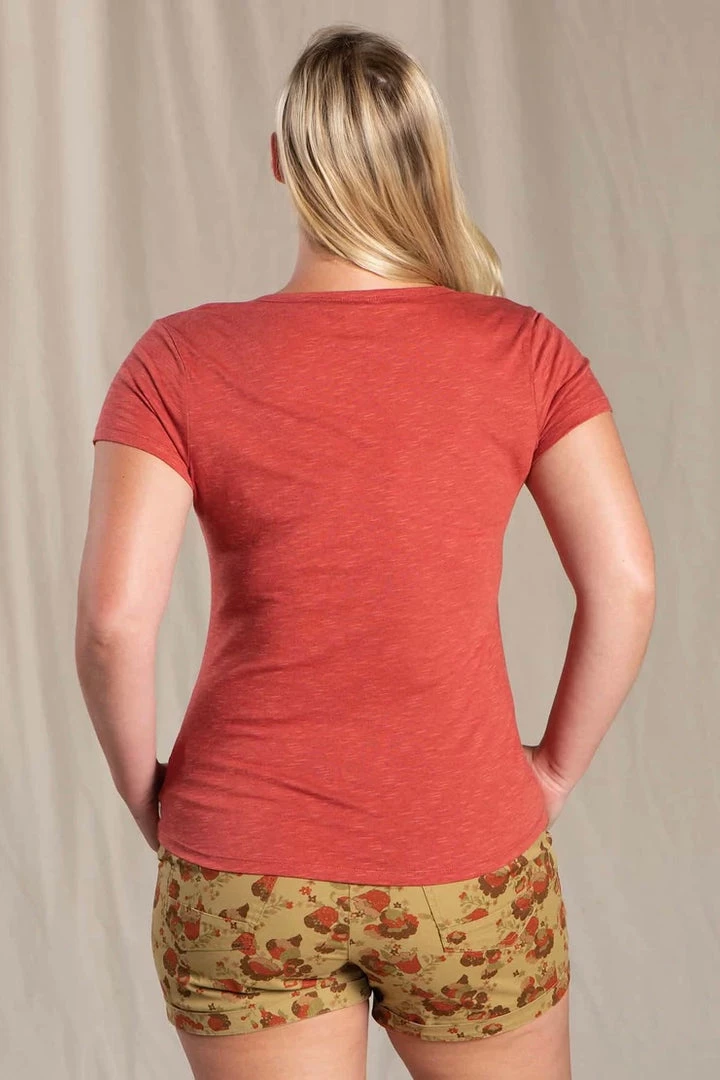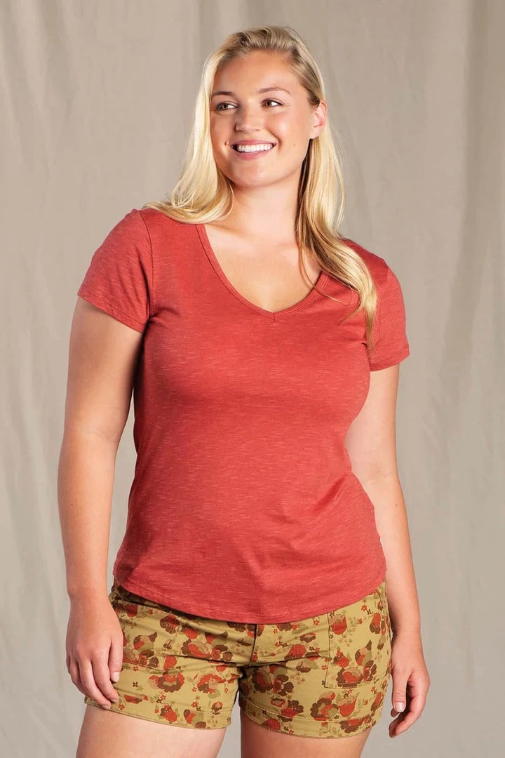 The perfect tee with a graceful V-neck top that instinctively fits and stretches depending on your needs. Slub fabric made of a lovely blend of organic cotton and tencel that always keeps it shape – wash after wash.