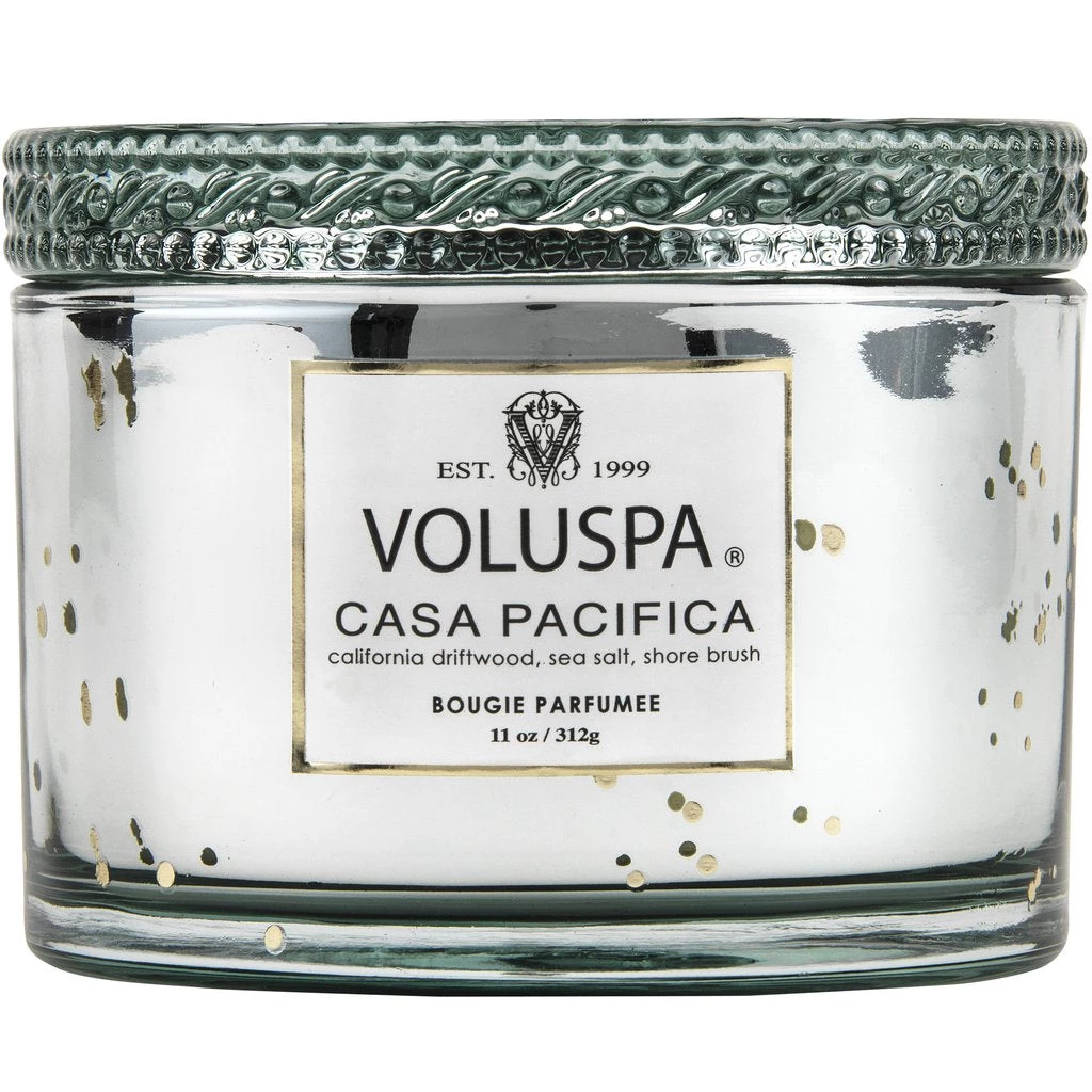 From the gold plating, to the reflective metallic container, this candle exudes class from the inside out. With a nod to 1920s’ design, the details are timeless and replete with glamour. The glass container includes a lid and is one you’ll reuse for years to come.