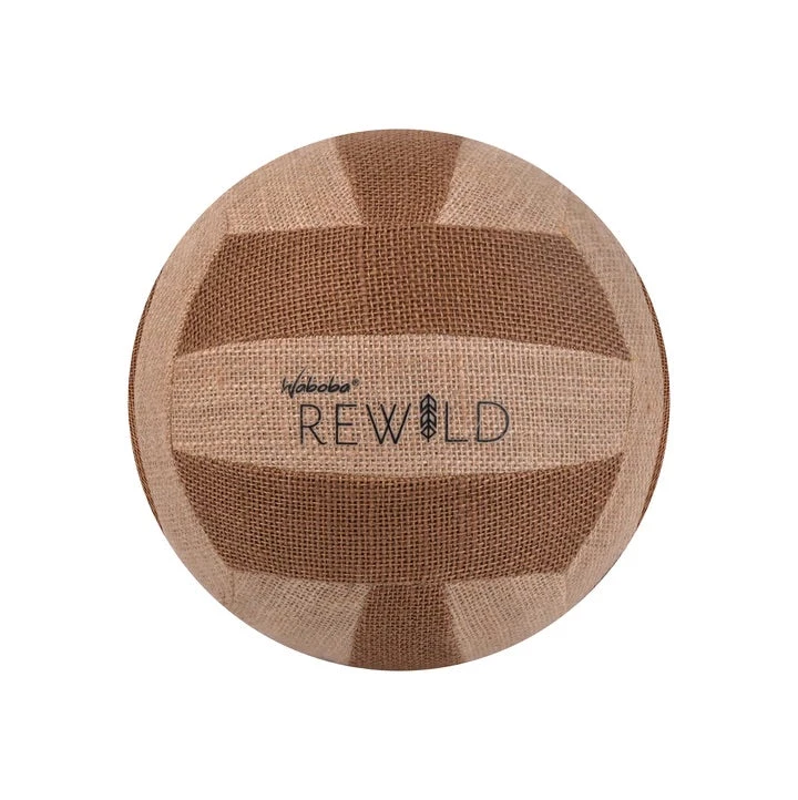 An eco-friendly natural collection of beach toys. The REWILD volleyball is made from the jute plant and rubber tree. Over time, salt water and sunshine may cause natural fading.