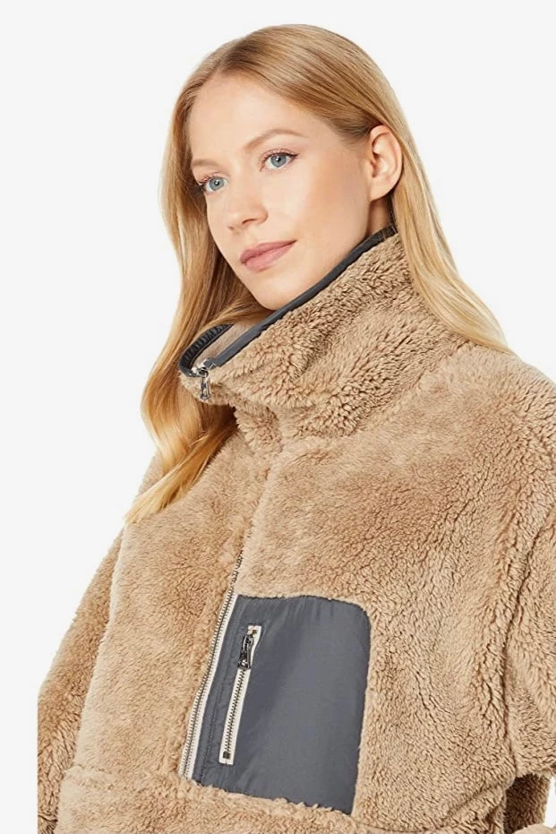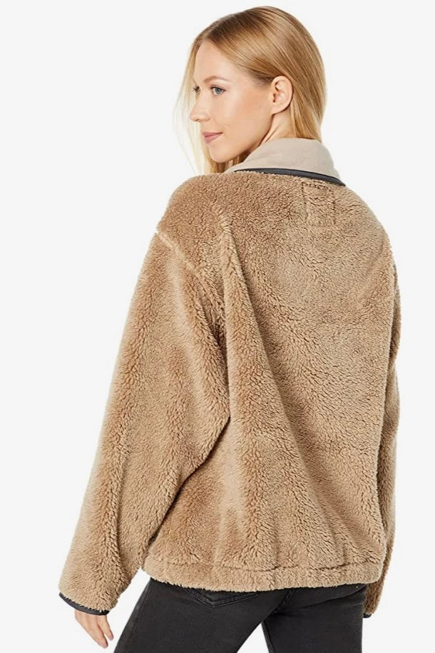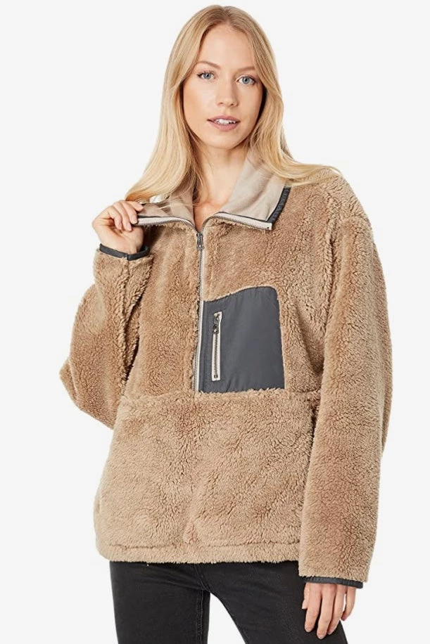 This half-zip shearling pullover is a super soft and cozy basic that has a relaxed fit and a contrast piping. Bring on the cold weather!